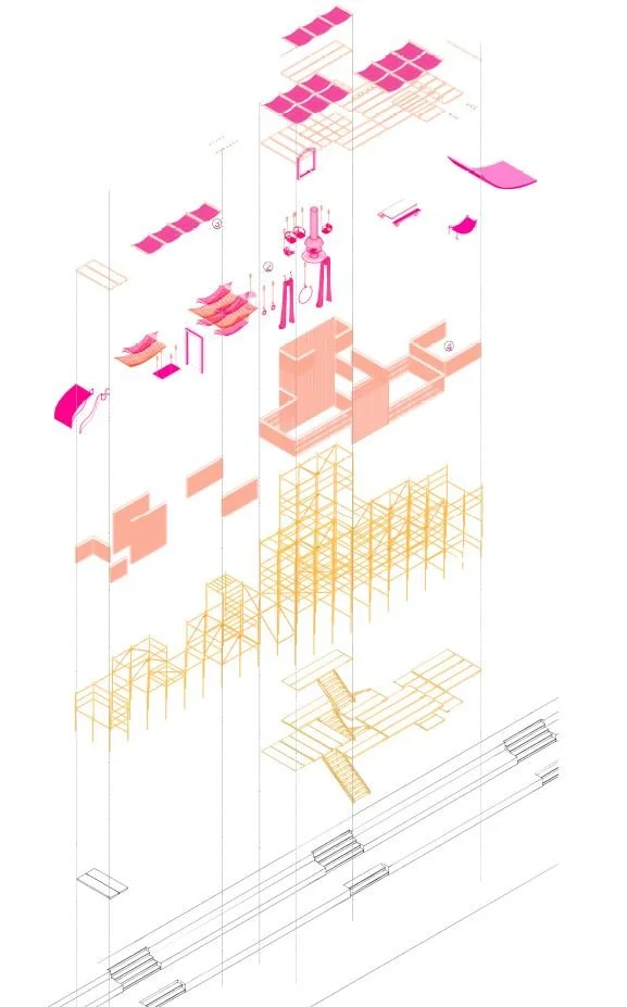 The deliberate contrast between these layers emphasizes the presence of various optional programs happening throughout the city, yet lacking a centralized location. By providing a space that accommodates facilities for different programs, a new dimension of spatial quality emerges, offering people the opportunity to cross paths and interact with individuals they would not typically encounter.